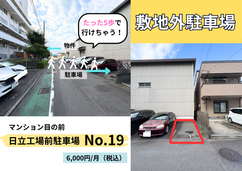 敷地外駐車場あり!マンションから5mの距離!(6000円/月)