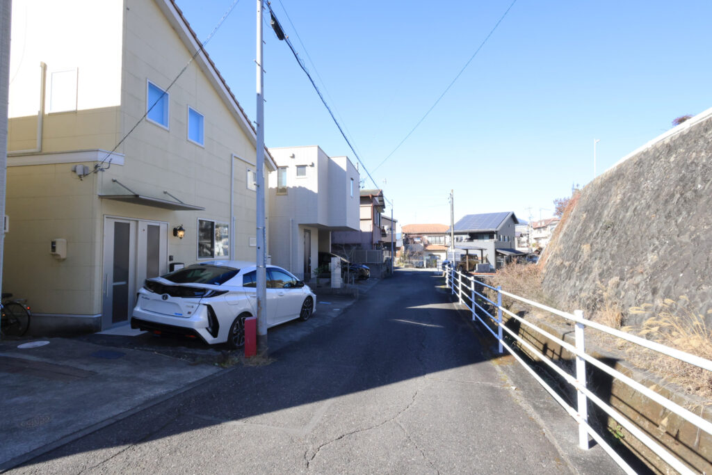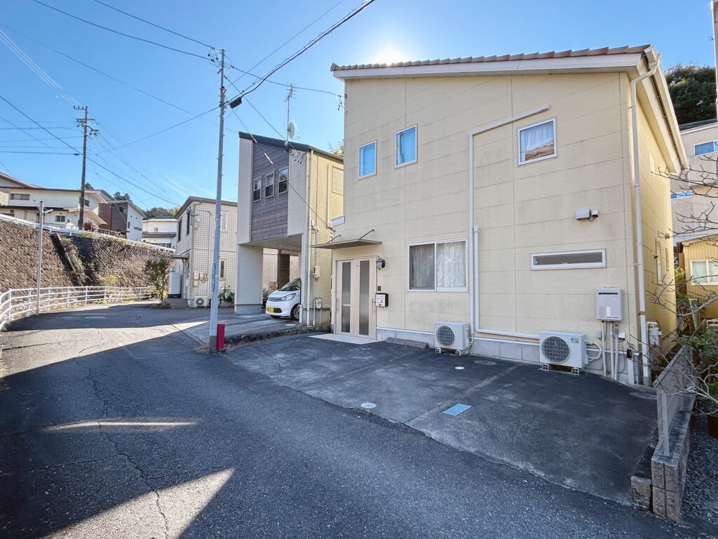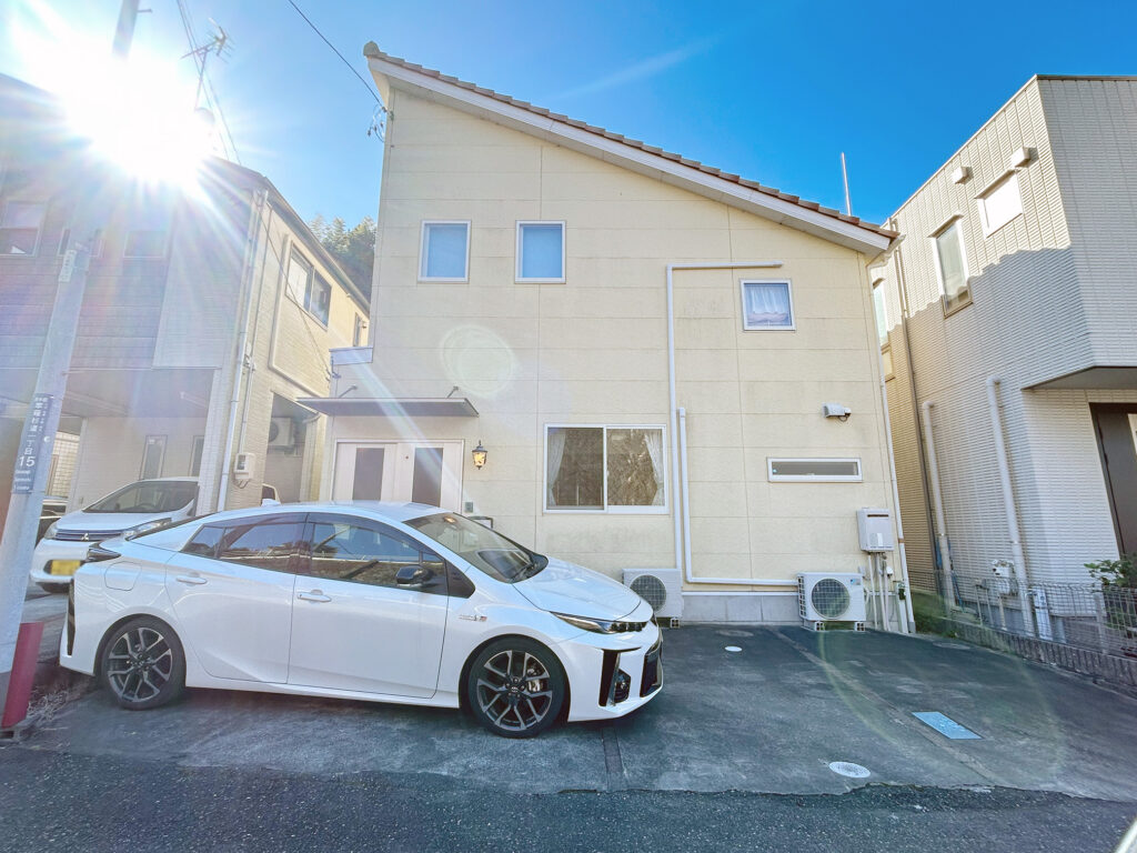 駐車場は普通車と小型車で2台駐車可能、前面道路は交通量が少なく、焦らず駐車できていいですよ(^^)
