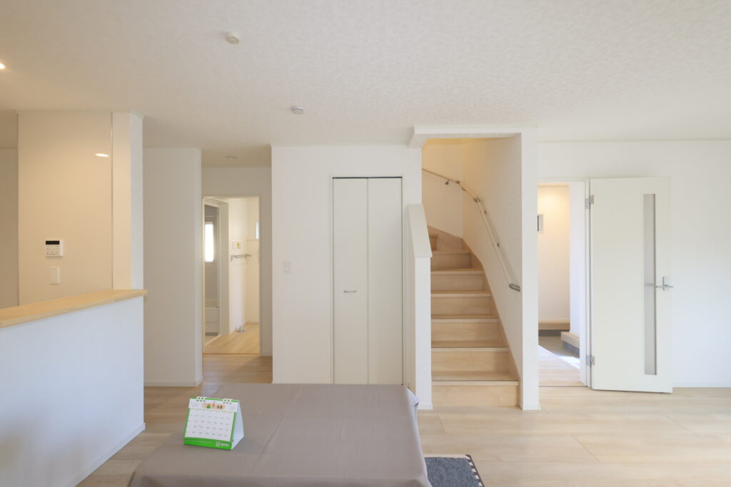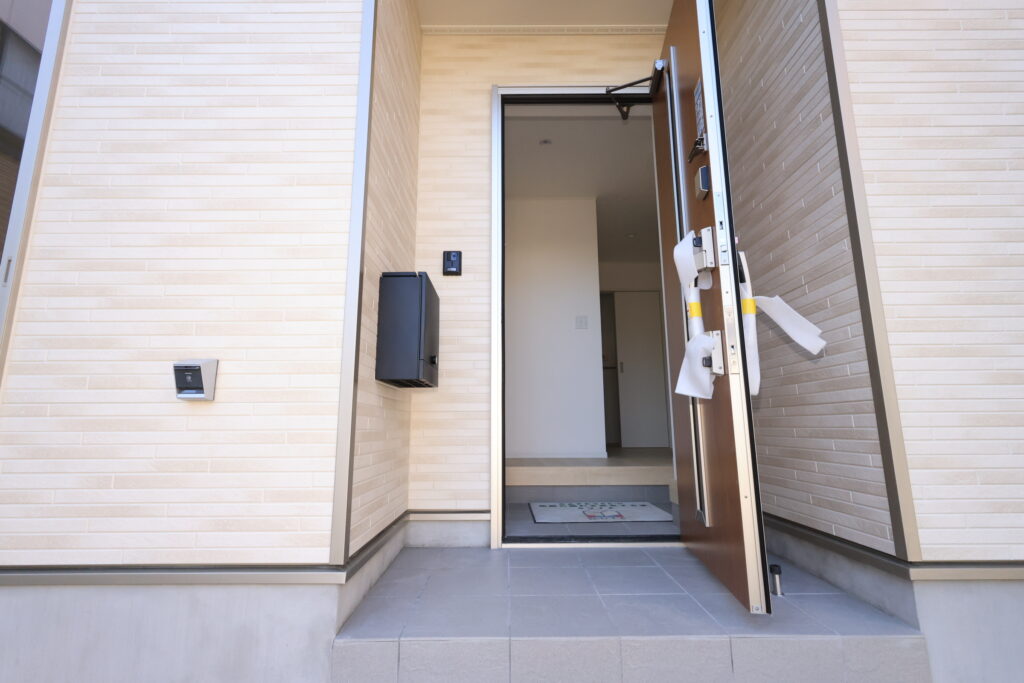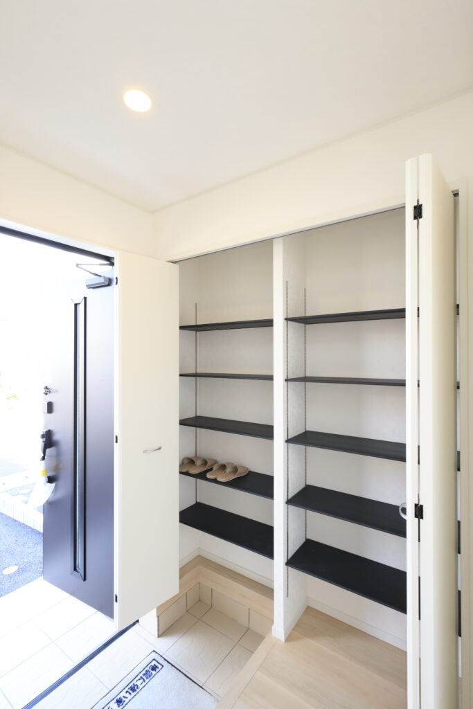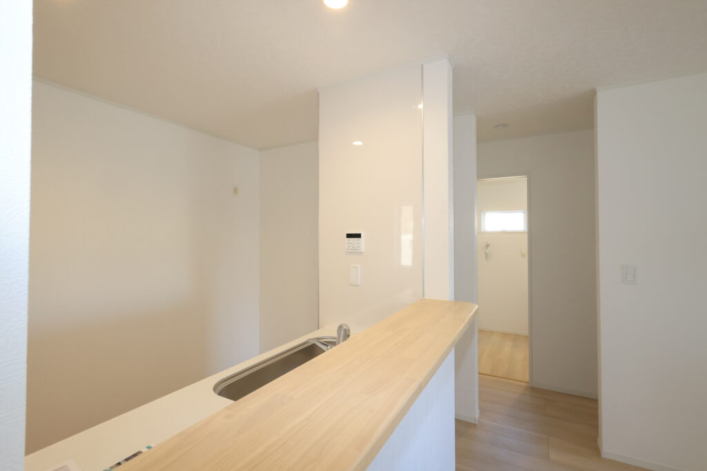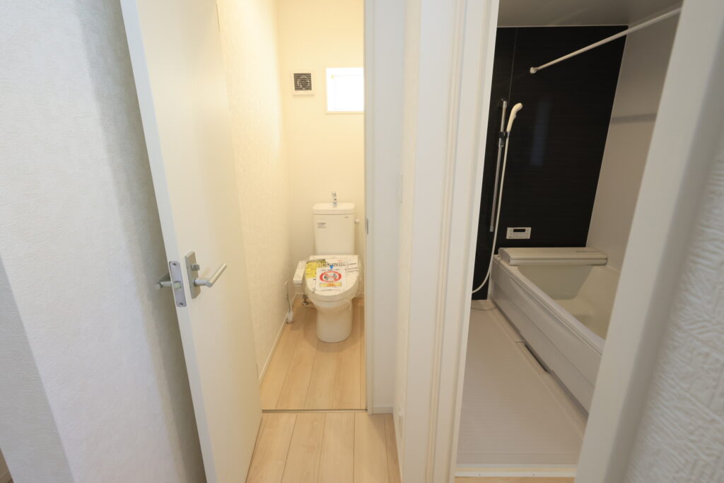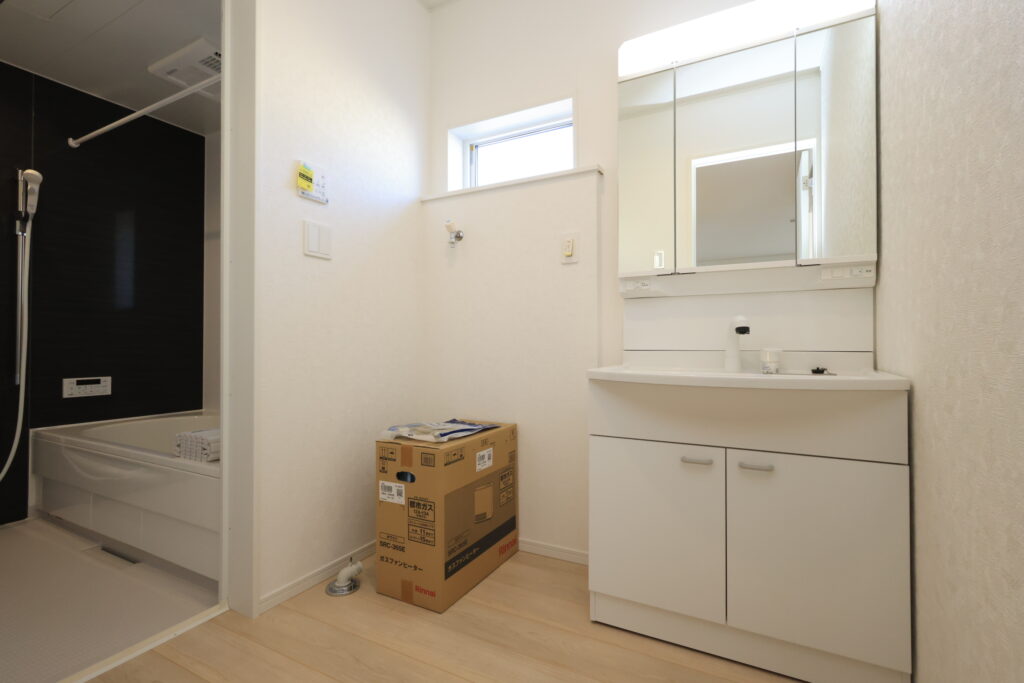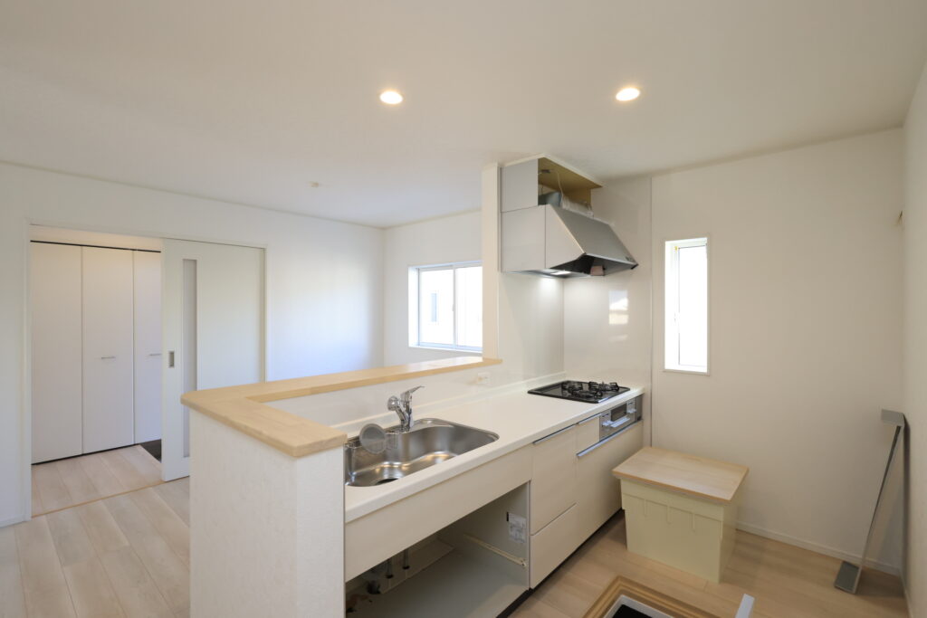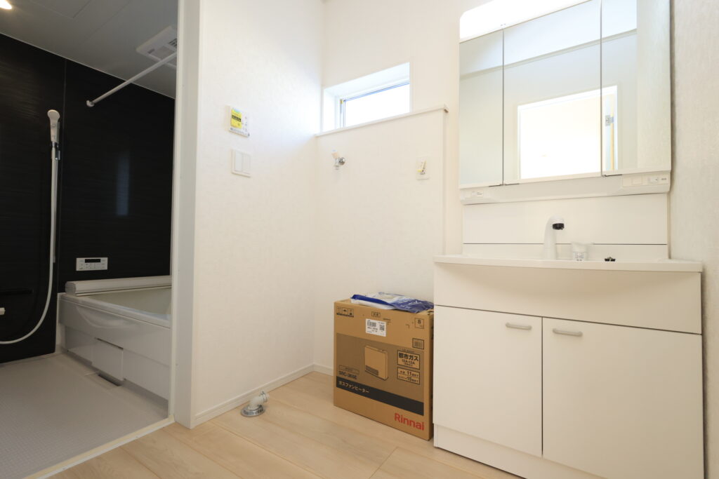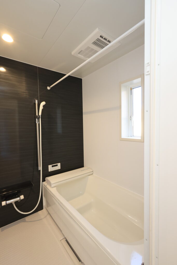 ・防犯カメラ・全室2面採光・人感センサー照明・TV付きインターホン・玄関収納・キッチンはオールインワン浄水栓・3口コンロ・床下収納・浴室暖房乾燥換気システム・追い焚き、オートバス