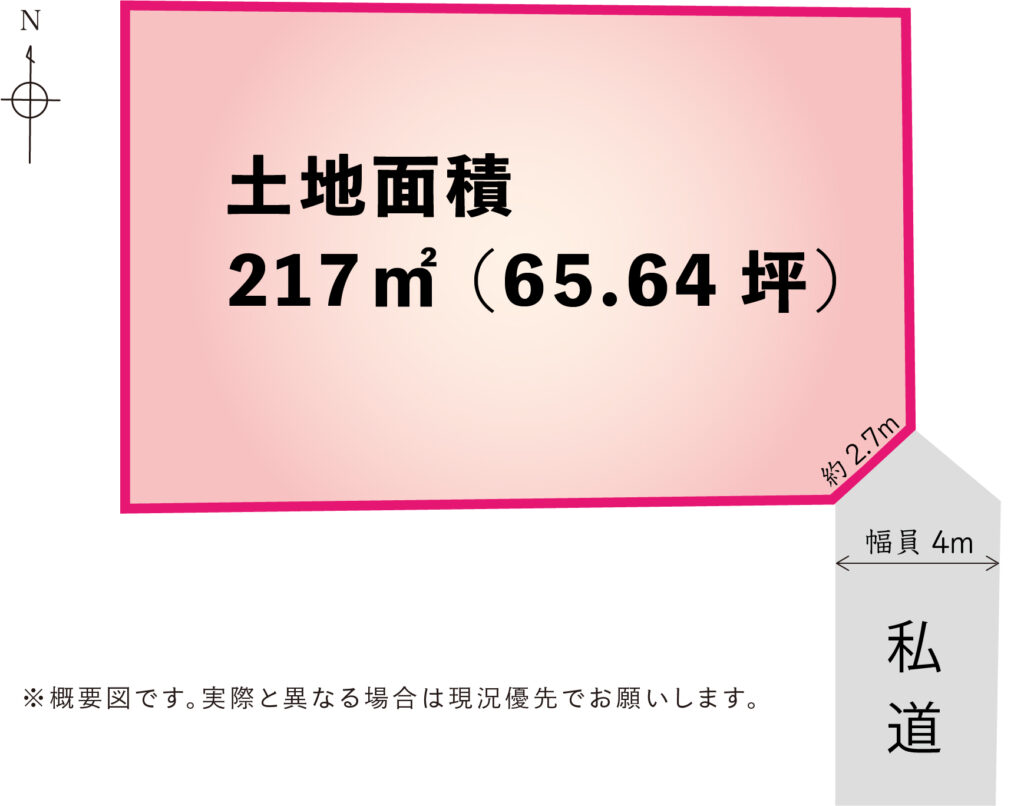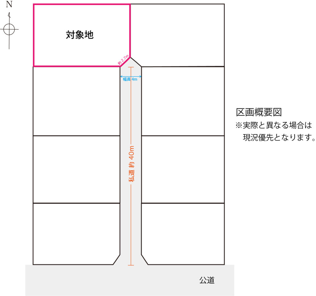 | 接道 | 南東側 私道4m 位置指定道路 ※私道面積194㎡持分1/8 |